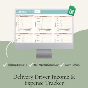 Track mileage, earnings, hours, and taxes with this Delivery Driver Google Sheets log book template with dashboard and auto-updating charts.