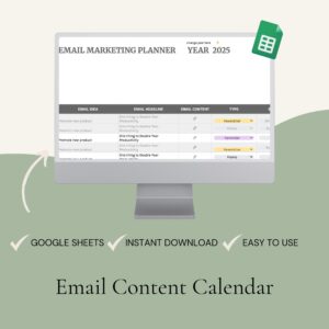 Plan your email marketing with this Google Sheets planner template. Perfect for small business owners to organize strategy, campaigns, and monthly emails.