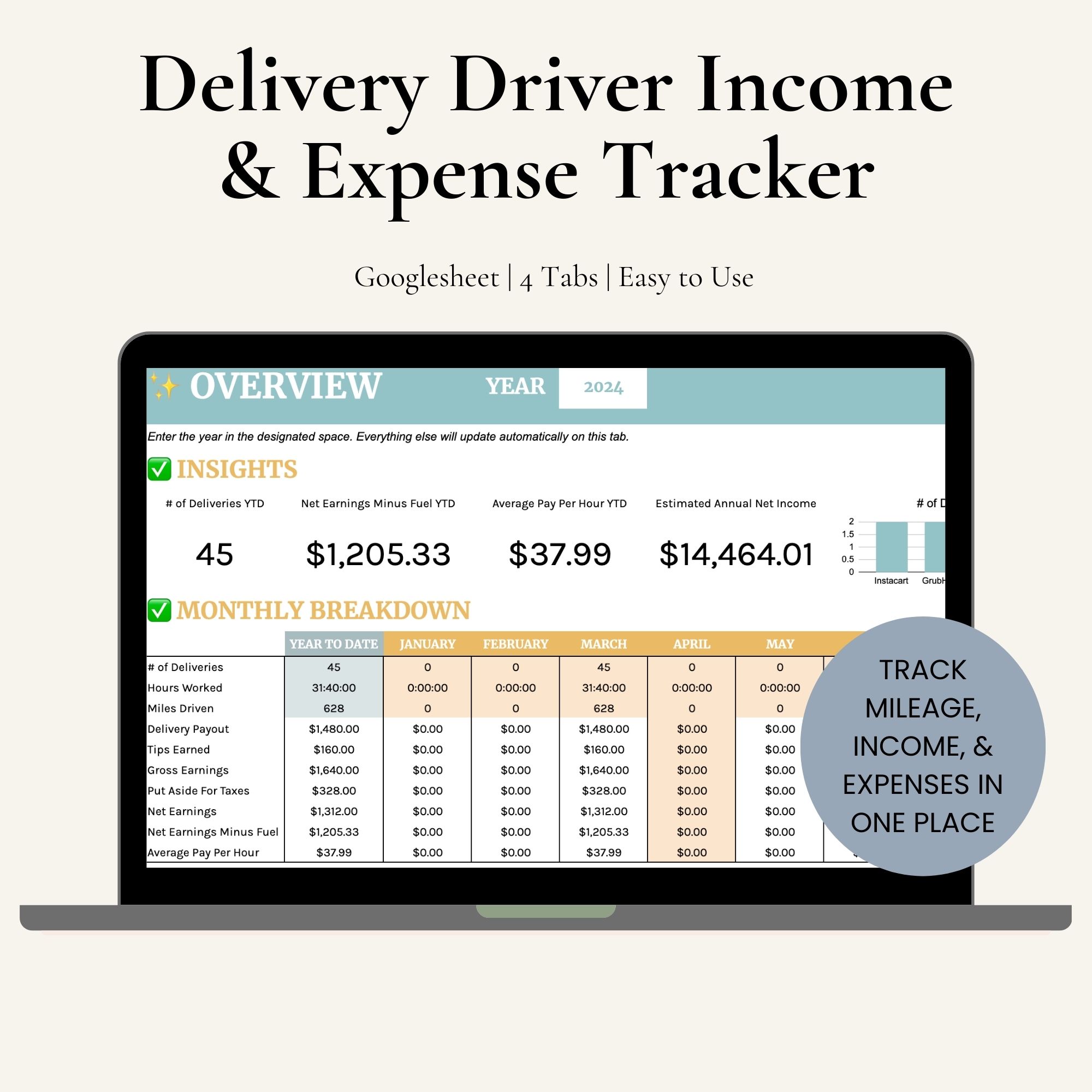 This Delivery Driver Log Book Template is a fully automated Google Sheets tracker designed to help you track mileage, earnings, hours, profits, deposits, and taxes — plus view everything on a powerful annual dashboard.